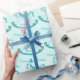 Aqua named rocking horse 4th birthday pattern wrap wrapping paper