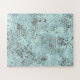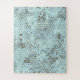 A soft dusty aqua base is layered with a myriad of graphic elements in charcoal gray, creating depth and visual interest.