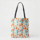 Be one of a kind with this beautiful aqua blue, two tone orange, cream, and black polygon geometric pattern tote bag. Make it even more special by adding a name to the corner.