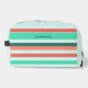 In refreshing aqua and orange, this trendy bag makes a stylish and summery accessory. With a cool striped design, the bag is useful for your travel essentials, and can be personalized with your name as an individual finishing touch.