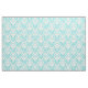 Chic and stylish Parisian Damask Fabric featuring an elegant flourish pattern in turquoise on a white background. Background color may be changed to match any craft project. Click "Customize It" to find more personalization options.