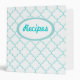 A stylish aqua and white pattern decorates this recipe binder. Organize all of your favorite recipes in this empty binder. The design is from original art.