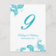 Aqua Peacock Floral Paisley Wedding Table Number