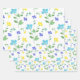 Aqua, Periwinkle, Yellow Watercolor Flower Pattern Wrapping Paper Sheets
