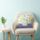 Aqua Periwinkle Yellow Watercolor Flower Stems Throw Pillow