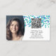 Blue and purple sequins set off the background of this business card design featuring template name and title on the front. The back includes a coordinated design and colors with text fields for the business name and details plus a placeholder photo and QR Code. Replace the placeholder photo with yours and the QR code with a link to your website, referrals, photos or other location. Fill in the template fields or click customize to select a font style, size, and color you like. NOTE the occupation only offers a limited number of characters in a row. Add this design where appropriate to one of the other products in the transfer scroll. Placeholder photo courtesy pixabay.com.