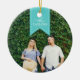 Personalize this elegant ceramic ornament with a photo on each side to commemorate a special year. Customize the front with your family name in white on a vibrant turquoise teal ribbon banner, and add the year to the back.