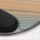The plastic backing is nice and sturdy. The grippy pads underneath keep the mouse pad where I put it on my table. The pad the mouse sits on is cut well to fit the backing. The wrist pad is perfectly soft, supportive, and thick. I'm left-handed, and this mouse pad works just as well for me as it does for my right-handed friends. I'm the designer of HippieClecticHope products. I'm blown away by how well my intricate fractals turn out on the tangible items in the Zazzle Marketplace. This particular mouse pad ***appears*** like a 3D object... A mathematically-engineered rainbow black opal, inlaid under transparent fabric...