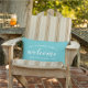 Aqua Script Welcome Monogram Porch Lumbar Pillow
