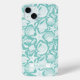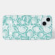 Customize this aqua shell pattern iPhone 15 plus case with your your name in a trendy modern CAP font in aqua on white. It's so modern and beachy!