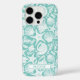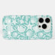 Customize this aqua shell pattern iPhone 16 pro case with your your name in a trendy modern CAP font in aqua on white. It's so modern and beachy!