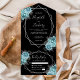 Aqua Silver Floral Geometric Black Wedding All In One Invitation