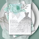 Aqua & Silver Floral Wedding Dress Bridal Shower Invitation