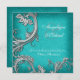 Aqua silver floral wedding engagement invitation