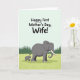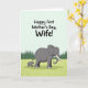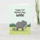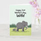This card opens on a pale aqua background that fades into a soft sky-like gradient, setting a calm, affectionate mood ❤️. Near the top, a large, rounded message is placed prominently in a dark, easy-to-read color, giving the greeting plenty of space to shine. Below the text, a gentle nature scene unfolds with a large gray elephant walking through a bright lime-green field. Close at its side, a smaller young elephant keeps pace, leaning in as if reassured by the steady presence of the adult. Their forward steps and the slight turn of their heads toward each other suggest a quiet closeness, like a caring friendship on the move 🌼. The grass is lightly textured with darker green strokes that hint at individual blades and add depth without feeling busy. In the distance, a band of deep emerald evergreen trees forms the horizon, their pointed shapes standing out against the smooth sky. The adult elephant’s white tusks and the youngster’s tiny tusks are clearly visible above the green ground.