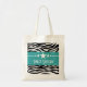 Trendy and modern Stars Zebra Print Sweet Sixteen Tote Bag featuring a chic black and white zebra print background and a bold turquoise border adorned with a fun star motif. This girly bag is a hip and stylish choice for holding fun sweet 16 party swag. Easy to customize, simply add the personalized text of your choosing. Click "Customize It" to find more personalization options.