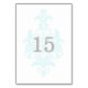 Simple with chic elegance describes this sophisticated Subtle Damask Wedding Table Card with a light turquoise damask flourish background. This stylish table card is perfect for a modern wedding and can be easily customized with a table number(s) or your wedding details. For more customization options, click on the Customize It button.