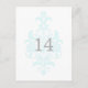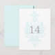 Modern with chic elegance describes this sophisticated Subtle Damask Wedding Table Number Postcard with a light turquoise damask flourish background. This classic table card is perfect for a traditional wedding and can be easily customized with a table number(s) or your wedding details. For more customization options, click on the Customize It button.