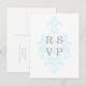 Simple with modern elegance describes this sophisticated Subtle Damask Wedding Response Postcard with a light turquoise damask flourish background. This classic RSVP is perfect for a traditional wedding and can be easily customized with your wedding details. For more customization options, click on the Customize It button.