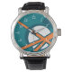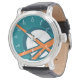 If your style leans more to fun and funky, you might consider adding this watch to your collection. Featuring a bold aqua, orange, teal, and white design, this watch is sure to set you apart from the pretend trendsetters.