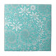 Aqua Teal and White Spring Flowers Pattern Ceramic Tile