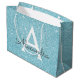 Aqua Teal Blue Glitter & Sparkle Monogram Large Gift Bag
