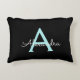 Aqua Teal Blue Script Girly Monogram Name Accent Pillow