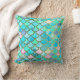 Aqua Teal Blue Watercolor Mermaid Scales Pattern Throw Pillow