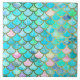 Aqua Teal Blue Watercolor Mermaid Scales Pattern Tile