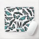 Aqua Teal Butterflies Watercolor Pattern Monogram Mouse Pad