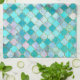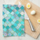 Aqua Teal Gold Oriental Moroccan Tile pattern Kitchen Towel