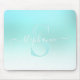Aqua Teal Shimmer Sparkle Girly Monogram Mouse Pad