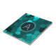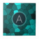 A beautiful mosaic with a stained glass appearance designed in vibrant shades of aqua, adorned with a customizable monogram, just ready to be gifted to someone you love or to make an exquisite decorative item for yourself. A decorative bundle of irregular geometric shapes connected together by a black border, very similar to the way stained glass is looking but also with a colorful honeycomb look-alike. Available in 7 color variations in our store.