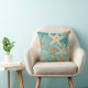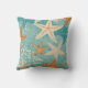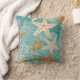 Aqua Teal Starfish Beach Seashell Pattern Throw Pillow