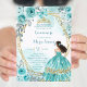 Aqua Teal Turquoise2 Rose & Butterfly Mis Quince Invitation