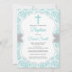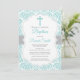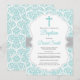 Aqua Teal Turquoise Damask Cross Baptism Invitation