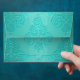 Aqua Teal Vintage Grunge Damask Pattern Envelope