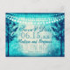 Romantic Rustic Trees Aqua Turquoise Teal String of Lights Wedding Save the Date Postcards with strings of lights at the top and twinkle fairy lights throughout. These aqua teal save the date cards are great for evening weddings and rustic country weddings with aqua wedding colors. Add your details to the template and put the bride's return address on the back. There is a blank area to hand address each postcard to your guests after printing.