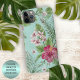 Contemporary pastel and fuchsia pink colored Plumeria and Hibiscus flowers, and green leaves watercolor painting on an aqua turquoise blue background. Beautiful, modern and cool cover for the trend-savvy and art-loving hip trendsetter, artsy motif lover who wants to protect their phone from dust and dirt, wear and tear. This design is available Apple iPhone 6, 7, 8 Plus, 10 or X, XR, XS, 11, 12, 13 Mini, 14, 15 Plus, and Pro Max cellphone cases. Show off your personal style, look fashionable trendy and feel stylish with a unique design on a mobile device accessory of your choice.