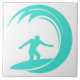Cool Turquoise; Blue Green surfer silhouette riding a wave on a surfboard. Great gift for anyone from professional surfers to anyone that simply loves to surf as a hobby. Images used on this item are licensed and © Graphics Factory.com