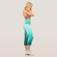 Aqua Turquoise Gradient Geometric Mesh Pattern Capri Leggings