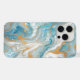 Aqua Turquoise Teal Blue White Gold Marble Pattern iPhone Case