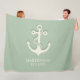 Nautical home decorator fleece throw blanket in aqua/mint green/turquoise with a cream/white anchor. Personalized with your family name and wedding/established date.