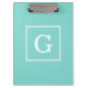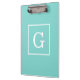Aqua Turquoise White Framed Initial Monogram Clipboard