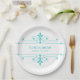 Simple and elegant Fancy Ornamental Wedding Paper Plates in turquoise and white featuring a sophisticated art deco style ornamental flourish border. Easy to customize, simply add your wedding details in the text fields provided. Click "Customize It" to find more personalization options.
