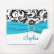 Aqua, White, and Black Damask Mousepad