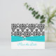 This black and white damask Save the Date card has an aqua blue PRINTED ribbon and PRINTED diamond jewel brooch that would be perfect for an aqua and black themed wedding. ****If you change fonts, or the size of the font, some of the design and/or text may get cut-off. Everything will print as you see it on your monitor. I will not see changes you make, and Zazzle will NOT correct anything (typos, mis-alignment etc.). The text is all customizable. If you need help with this product, please email me BEFORE you place your order. If you require any other matching items, please email your request to niteowlstudio@gmail.com
