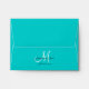 Aqua Blue White Monogram Wedding RSVP Printed envelopes. Design by Elke Clarke ©2008. Customize with your response card return address, personal monogram and information and wedding colors. Also pick from the same paper styles as your wedding invitaion for that coordinated look. Fits the 4.25 x 5.5 inch RSVP reply cards found in the gallery.