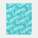 Celebrate your favorite player or football enthusiast with this personalized fleece football blanket. An all over pattern of soccer balls on an aqua background set the stage for a personal name. Makes a great gift! Created by Simply Farmhouse Press.