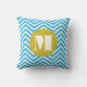 Aqua Yellow Ivory Monogram Modern Zig Zag Pillow